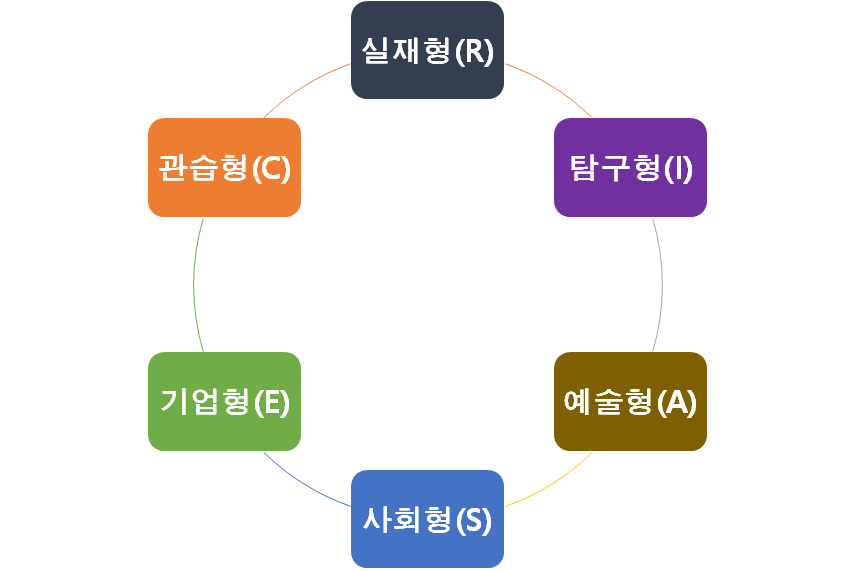 안녕하세요 에듀몬입니다. 홀랜드(Holland)는 개인의 성격유형이 진로선택과 진로성숙에 중요한 영향을 미친다고 보았으며, 인간의 성격과 환경의 유형을 육각형 모형으로 제시하였습니다. 이들을 실재적(Realistic), 탐구적(Investigative), 예술적(Artistic), 사회적(Social), 기업적(Enterprising), 관습적(Conventional)으로 명명하였으며, 그 첫 글자를 따서 RIASEC유형이라고 불렀습니다. 이번 시간에는 홀랜드의 6가지 성격유형에 대해 알아보도록 하겠습니다.
