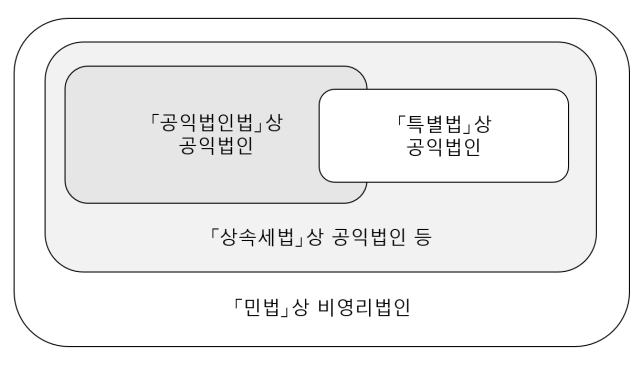 형식상 공익법인은 비영리법인의 일종입니다. 현행 「민법」은 “학술, 종교, 자선, 기예, 사교 기타 영리아닌 사업을 목적으로 하는 사단 또는 재단”을 비영리법인으로 정의하고 있으며(제 32 조), 「공익법인의 설립∙운영에 관한 법률(이하 공익법인법)」은 “법인의 설립∙운영 등에 관한 「민법」의 규정을 보완”하기 위한 목적에서 제정되었습니다(제 1 조). 따라서 「공익법인법」은 「민법」의 특별법으로, 공익법인의 법적 문제를 다루고자 할 때는 두 법을 종합적으로 검토해야 합니다.