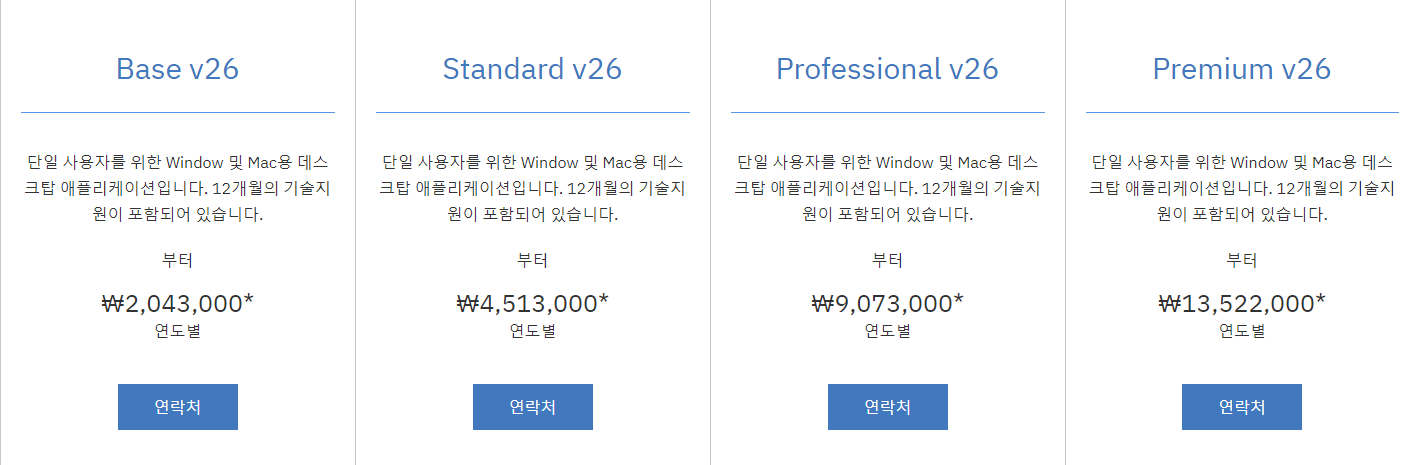 인터넷 포털에 SPSS를 검색해보면 SPSS 가격, SPSS 다운, SPSS 무료 등이 연관검색어로 나오는 것으로 보아 SPSS가 결코 만만한 가격은 아님을 알 수 있습니다. 공식 홈페이지에서 안내하는 SPSS의 공식 가격은 다음과 같습니다.